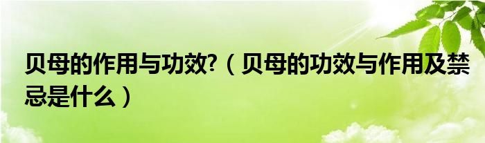 关于贝母的作用与功效?,贝母的功效与作用及禁忌是什么这个很多人还不知道,今天菲菲来为大家解答以上的问题,现在让我们一起来看看吧!