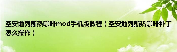 关于圣安地列斯热咖啡mod手机版教程,圣安地列斯热咖啡补丁怎么操作这个很多人还不知道,今天菲菲来为大家解答以上的问题,现在让我们一起来看看吧!