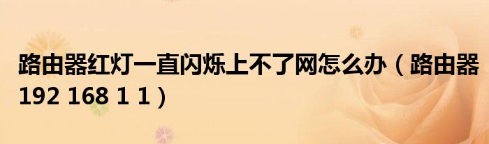 大家好,小飞来为大家解答以上问题,路由器红灯一直闪烁上不了网怎么办,路由器192 168 1 1很多人还不知道,现在让我们一起来看看吧!