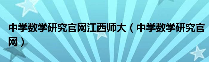 关于中学数学研究官网江西师大,中学数学研究官网这个很多人还不知道,今天菲菲来为大家解答以上的问题,现在让我们一起来看看吧!