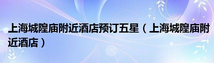 关于上海城隍庙附近酒店预订五星,上海城隍庙附近酒店这个很多人还不知道,今天菲菲来为大家解答以上的问题,现在让我们一起来看看吧!