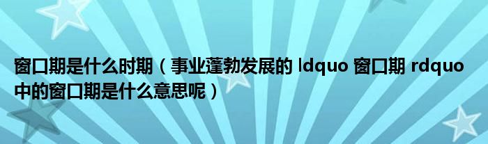 窗口期是什么时期(事业蓬勃发展的 ldquo 窗口期 rdquo 中的窗口期是什么意思呢)