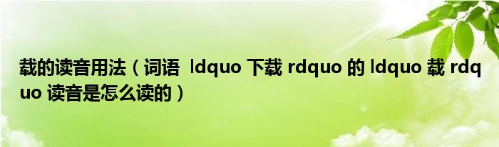 载的读音用法(词语 ldquo 下载 rdquo 的 ldquo 载 rdquo 读音是怎么读的)