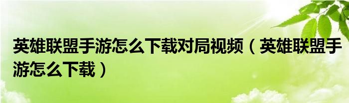 英雄联盟手游怎么下载对局视频,英雄联盟手游怎么下载很多人还不知道,乐乐来为大家解答以上问题,现在让我们一起来看看吧!