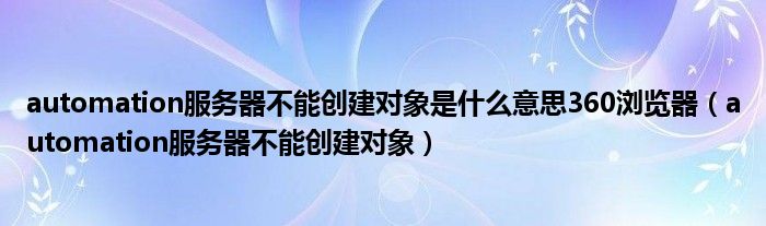 大家好,小飞来为大家解答以上问题,automation服务器不能创建对象是什么意思360浏览器,automation服务器不能创建对象很多人还不知道,现在让我们一起来看看吧!