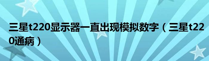 大家好,雨雨来为大家解答以上问题,三星t220显示器一直出现模拟数字,三星t220通病很多人还不知道,现在让我们一起来看看吧!