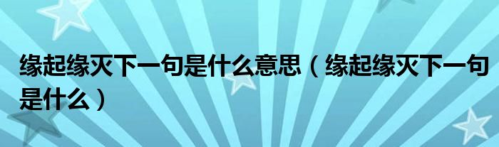 大家好,小晋来为大家解答以下问题,关于缘起缘灭下一句是什么意思,缘起缘灭下一句是什么很多人还不知道,今天让我们一起来看看吧!