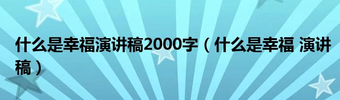 关于什么是幸福演讲稿2000字,什么是幸福 演讲稿这个很多人还不知道,今天菲菲来为大家解答以上的问题,现在让我们一起来看看吧!