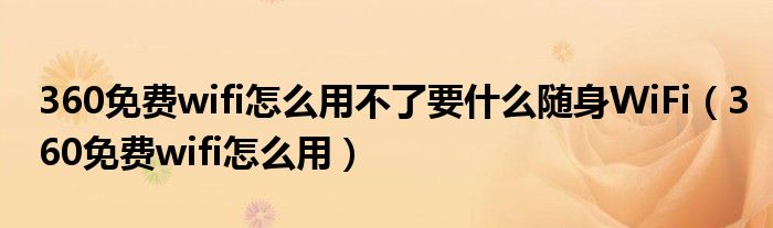 大家好,小飞来为大家解答以上问题,360免费wifi怎么用不了要什么随身WiFi,360免费wifi怎么用很多人还不知道,现在让我们一起来看看吧!