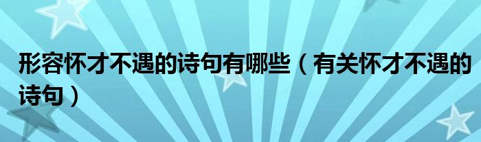 关于形容怀才不遇的诗句有哪些,有关怀才不遇的诗句这个很多人还不知道,今天菲菲来为大家解答以上的问题,现在让我们一起来看看吧!