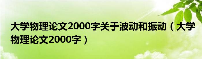 关于大学物理论文2000字关于波动和振动,大学物理论文2000字这个很多人还不知道,今天菲菲来为大家解答以上的问题,现在让我们一起来看看吧!