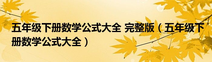 关于五年级下册数学公式大全 完整版,五年级下册数学公式大全这个很多人还不知道,今天菲菲来为大家解答以上的问题,现在让我们一起来看看吧!