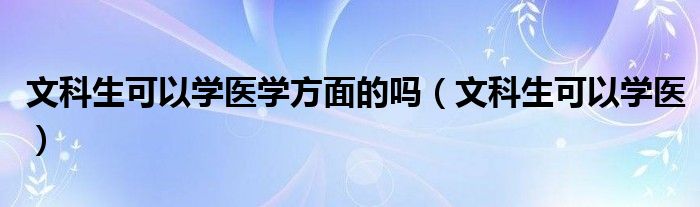 关于文科生可以学医学方面的吗,文科生可以学医这个很多人还不知道,今天菲菲来为大家解答以上的问题,现在让我们一起来看看吧!