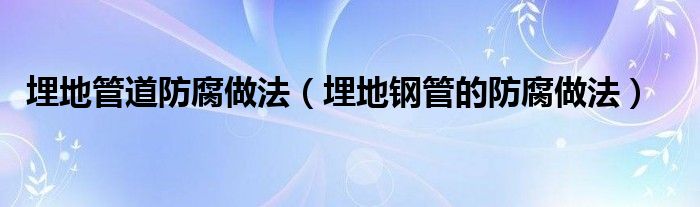 1、埋地钢管的防腐做法如下:一、管道防腐 钢管的防腐按图纸要求,采用环氧煤沥青漆外包玻璃丝布,外涂面漆防腐 外壁施工工艺流程:管道除锈→涂底漆→第一遍面漆→第二遍面漆→缠玻璃丝布→面漆→面漆; 内壁施工工艺流程:管道除锈→涂底漆→第一遍面漆→第二遍面漆→第三遍面漆 管道除锈 涂底漆前管子表面应清除油垢、灰渣、铁锈、氧化铁皮。