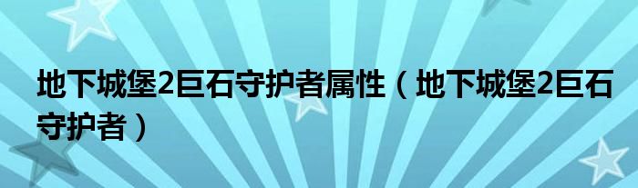地下城堡2巨石守护者属性(地下城堡2巨石守护者)