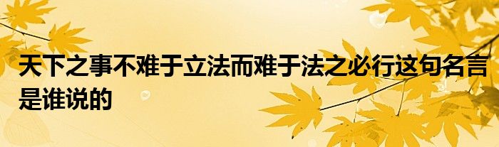 关于天下之事不难于立法而难于法之必行这句名言是谁说的这个很多人还不知道,今天菲菲来为大家解答以上的问题,现在让我们一起来看看吧!
