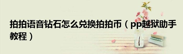 大家好,小飞来为大家解答以上问题,拍拍语音钻石怎么兑换拍拍币,pp越狱助手教程很多人还不知道,现在让我们一起来看看吧!