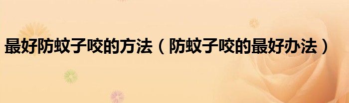最好防蚊子咬的方法(防蚊子咬的最好办法)