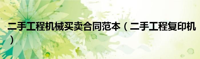 大家好,小飞来为大家解答以上问题,二手工程机械买卖合同范本,二手工程复印机很多人还不知道,现在让我们一起来看看吧!