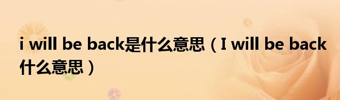 i will be back是什么意思,I will be back什么意思这个很多人还不知道,小飞来为大家解答以上的问题。现在让我们一起来看看吧!