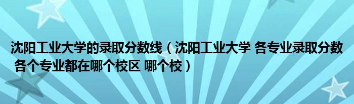 关于沈阳工业大学的录取分数线,沈阳工业大学 各专业录取分数 各个专业都在哪个校区 哪个校这个很多人还不知道,今天菲菲来为大家解答以上的问题,现在让我们一起来看看吧!