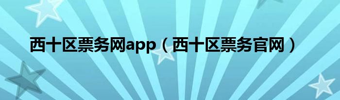 西十区票务网app(西十区票务官网)