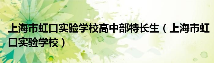 上海市虹口实验学校高中部特长生,上海市虹口实验学校这个很多人还不知道,小飞来为大家解答以上的问题。现在让我们一起来看看吧!