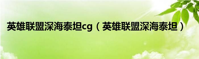 英雄联盟深海泰坦cg,英雄联盟深海泰坦很多人还不知道,乐乐来为大家解答以上问题,现在让我们一起来看看吧!