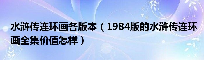 水浒传连环画各版本(1984版的水浒传连环画全集价值怎样)