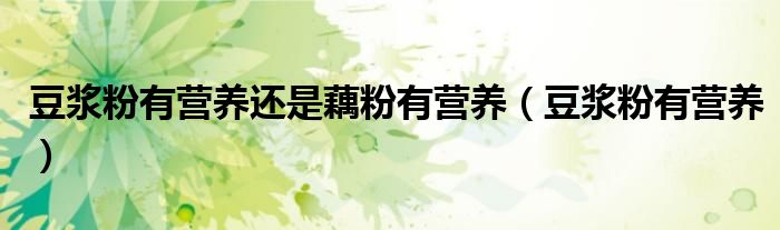 关于豆浆粉有营养还是藕粉有营养,豆浆粉有营养这个很多人还不知道,今天菲菲来为大家解答以上的问题,现在让我们一起来看看吧!