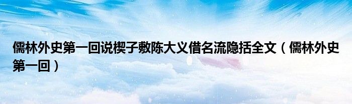 关于儒林外史第一回说楔子敷陈大义借名流隐括全文,儒林外史第一回这个很多人还不知道,今天菲菲来为大家解答以上的问题,现在让我们一起来看看吧!