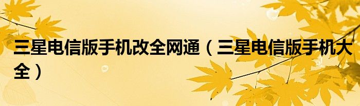 三星电信版手机改全网通,三星电信版手机大全很多人还不知道,乐乐来为大家解答以上问题,现在让我们一起来看看吧!