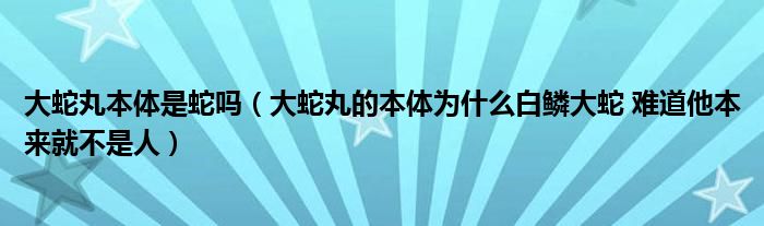 关于大蛇丸本体是蛇吗,大蛇丸的本体为什么白鳞大蛇 难道他本来就不是人这个很多人还不知道,今天菲菲来为大家解答以上的问题,现在让我们一起来看看吧!
