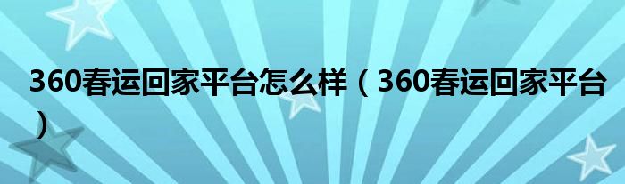 大家好,小飞来为大家解答以上问题,360春运回家平台怎么样,360春运回家平台很多人还不知道,现在让我们一起来看看吧!