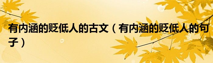 有内涵的贬低人的古文,有内涵的贬低人的句子这个很多人还不知道,小飞来为大家解答以上的问题。现在让我们一起来看看吧!