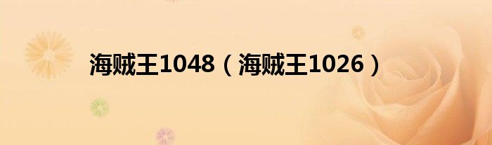 海贼王1048,海贼王1026这个很多人还不知道,小飞来为大家解答以上的问题。现在让我们一起来看看吧!