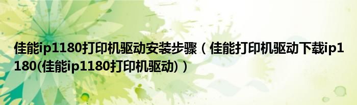大家好,小常来为大家解答以上问题。佳能ip1180打印机驱动安装步骤,佳能打印机驱动下载ip1180(佳能ip1180打印机驱动)很多人还不知道,现在让我们一起来看看吧!
