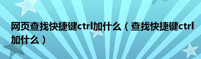 网页查找快捷键ctrl加什么(查找快捷键ctrl加什么)