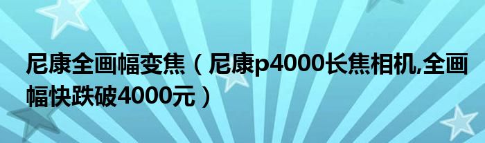 大家好,小常来为大家解答以上问题。尼康全画幅变焦,尼康p4000长焦相机,全画幅快跌破4000元很多人还不知道,现在让我们一起来看看吧!