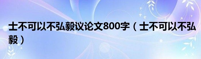 士不可以不弘毅议论文800字(士不可以不弘毅)