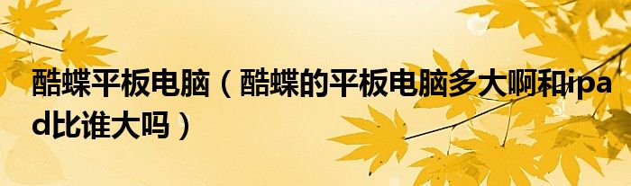 1,酷蝶的平板电脑多大啊和ipad比谁大吗: 酷蝶屏幕7寸,适合中国人手掌大小,ipad是9寸,略大一些,比较适合欧美人的体型。