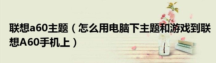 大家好,小常来为大家解答以上问题。联想a60主题,怎么用电脑下主题和游戏到联想A60手机上很多人还不知道,现在让我们一起来看看吧!