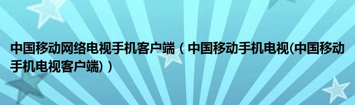 大家好,小常来为大家解答以上问题。中国移动网络电视手机客户端,中国移动手机电视(中国移动手机电视客户端)很多人还不知道,现在让我们一起来看看吧!