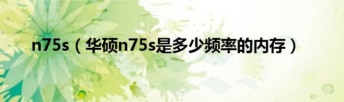大家好,小常来为大家解答以上问题。n75s,华硕n75s是多少频率的内存很多人还不知道,现在让我们一起来看看吧!