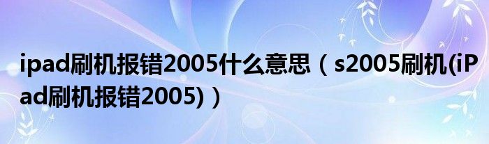 大家好,小常来为大家解答以上问题。ipad刷机报错2005什么意思,s2005刷机(iPad刷机报错2005)很多人还不知道,现在让我们一起来看看吧!