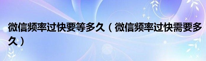 大家好,小晋来为大家解答以下问题,关于微信频率过快要等多久,微信频率过快需要多久很多人还不知道,今天让我们一起来看看吧!