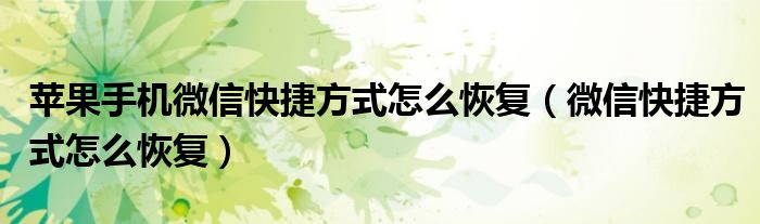 苹果手机微信快捷方式怎么恢复(微信快捷方式怎么恢复)