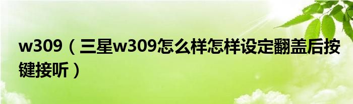 大家好,小常来为大家解答以上问题。w309,三星w309怎么样怎样设定翻盖后按键接听很多人还不知道,现在让我们一起来看看吧!