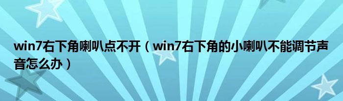 大家好,今天小悦来为大家解答以上问题。win7右下角喇叭点不开,win7右下角的小喇叭不能调节声音怎么办很多人还不知道,现在让我们一起来看看吧!