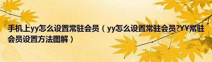 大家好,今天小悦来为大家解答以上问题。手机上yy怎么设置常驻会员,yy怎么设置常驻会员?YY常驻会员设置方法图解很多人还不知道,现在让我们一起来看看吧!